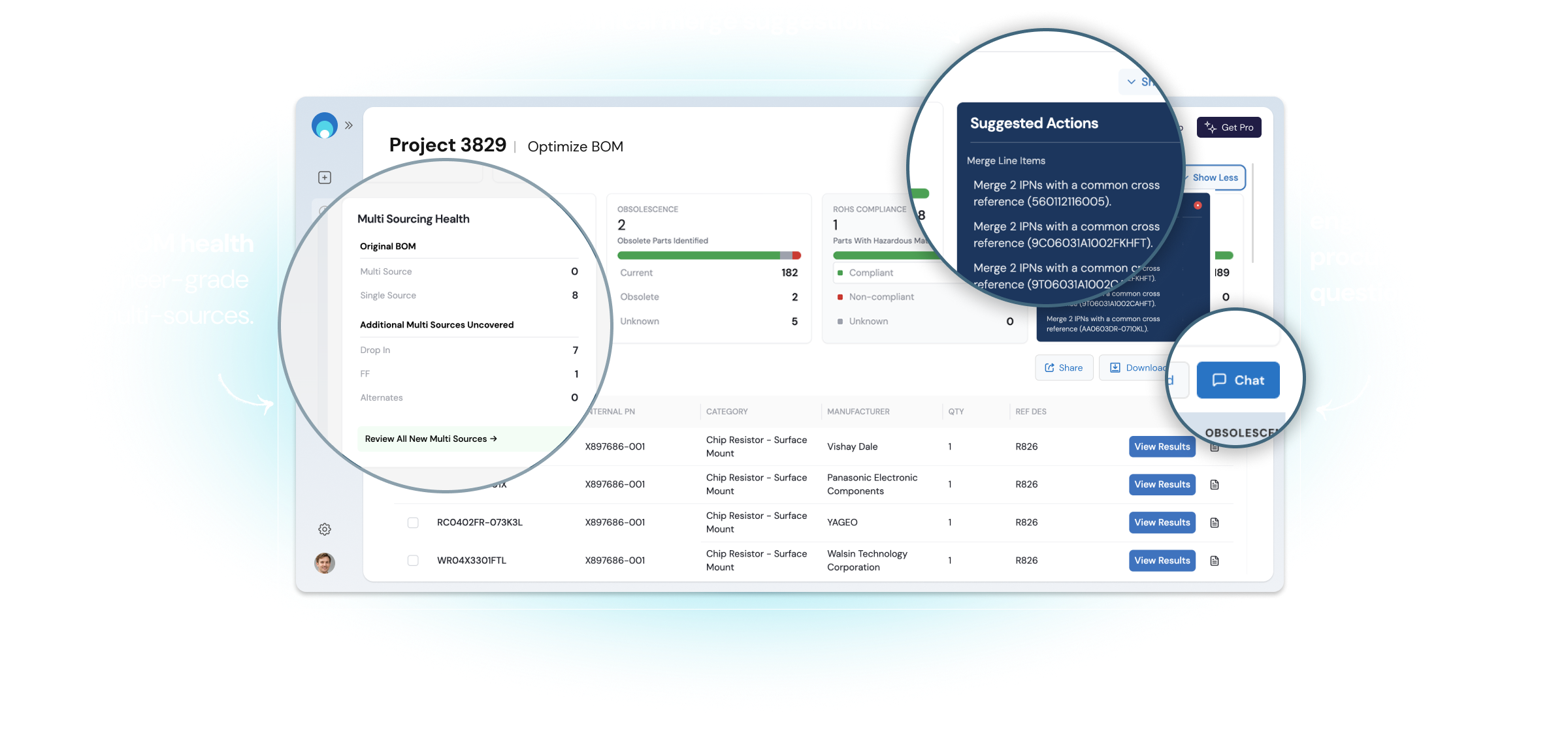 Run deep technical cross‑references and alternates, compare pin‑precise datasheets, chat with component specs, perform fit‑form analyses, extract package types, and more—all in seconds.